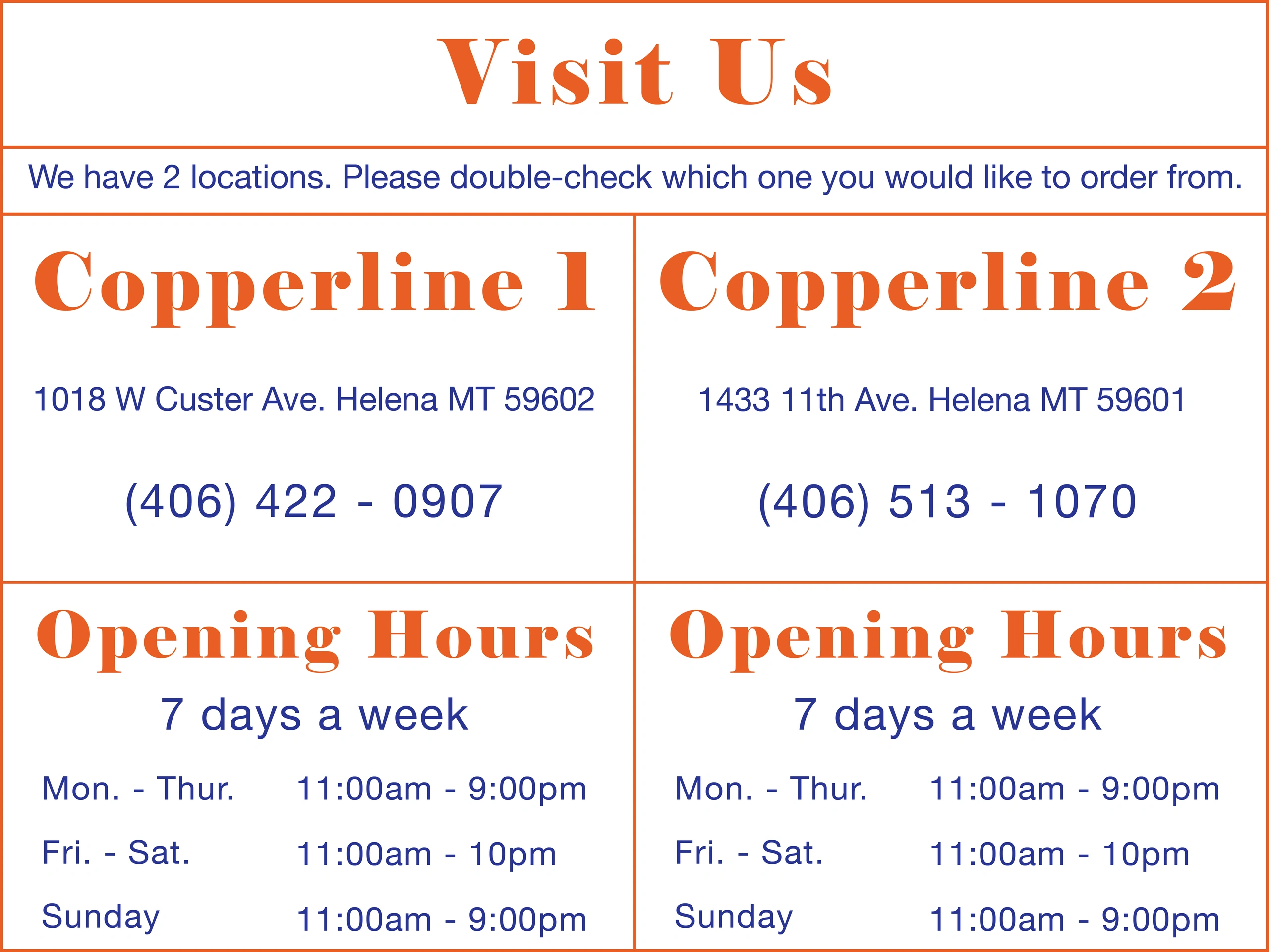 Copperline 2 | 1433 11th Ave. Helena MT 59601 |